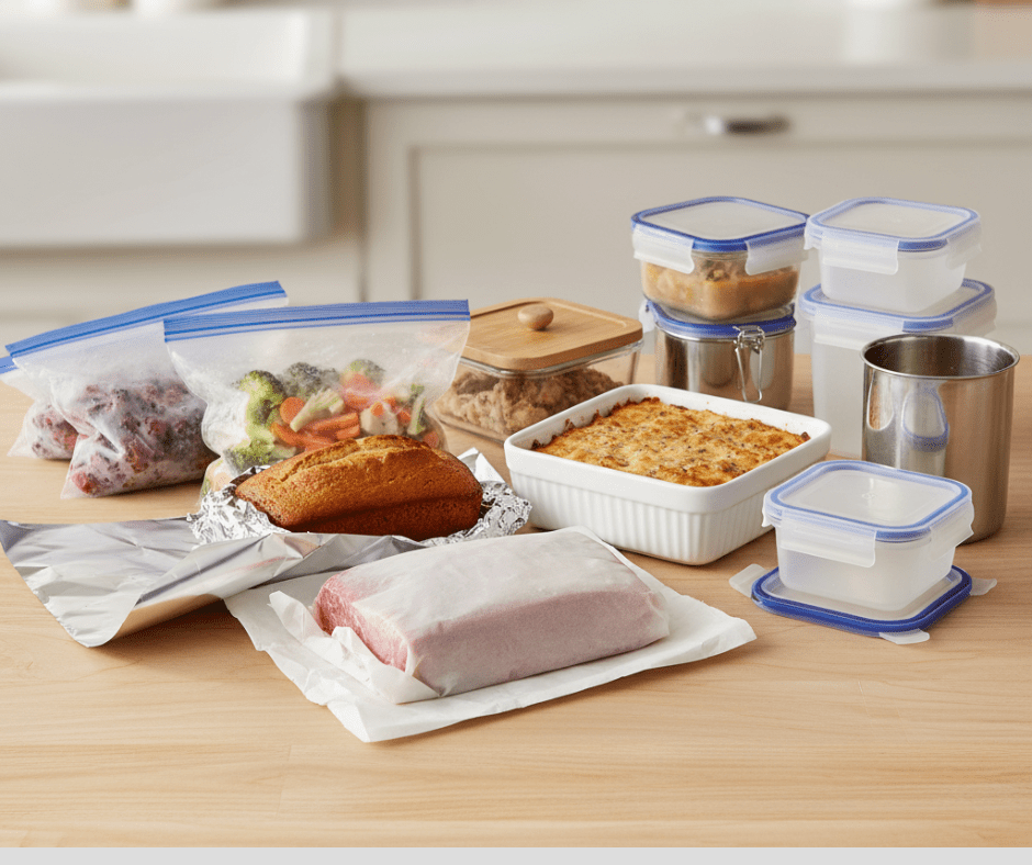 - Freezer aluminum foil – Great for wrapping solid items, casseroles, and baked goods.