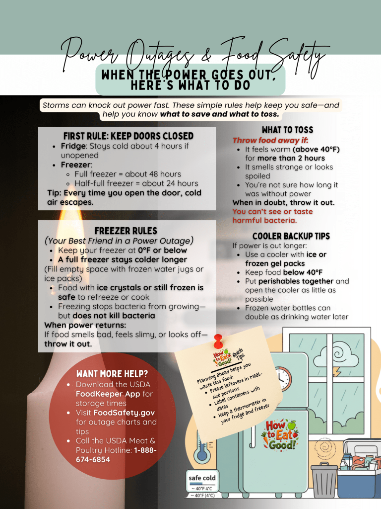 Power outages happen—storms, heat waves, accidents, snow, ice, wind—life throws them at us. When the lights go out, food safety quickly becomes a top priority. Refrigerators and freezers can keep food cold for a while, but once the temperature rises, bacteria can grow fast and make food unsafe. Knowing how long food stays good and how to handle it safely can help you avoid foodborne illness and save money.