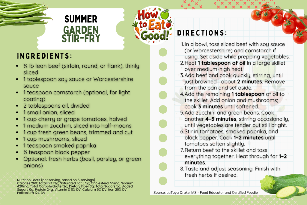 This simple skillet meal leans into peak summer produce and uses a modest amount of beef to build a filling, flavorful dish. It’s designed to be flexible—swap vegetables based on what’s fresh, affordable, or already in your kitchen.